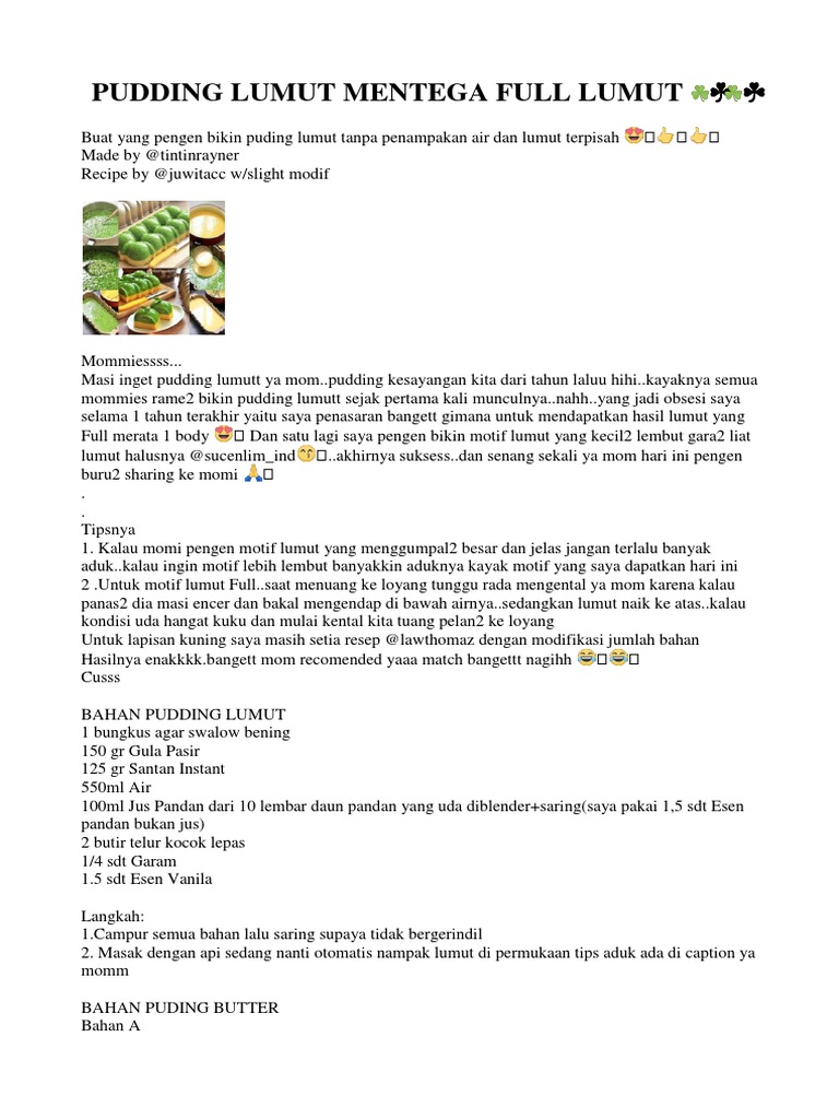 Energian Saasto These Resep Puding Lumut Mentega