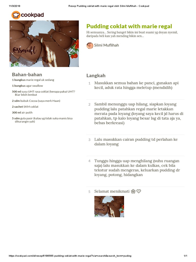 Resep Puding Coklat Marie Sederhana Oleh Sarah Cookpad