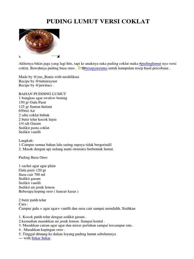 Resep Puding Lumut Coklat Kiriman Dari Mutt Maa Kumpulan