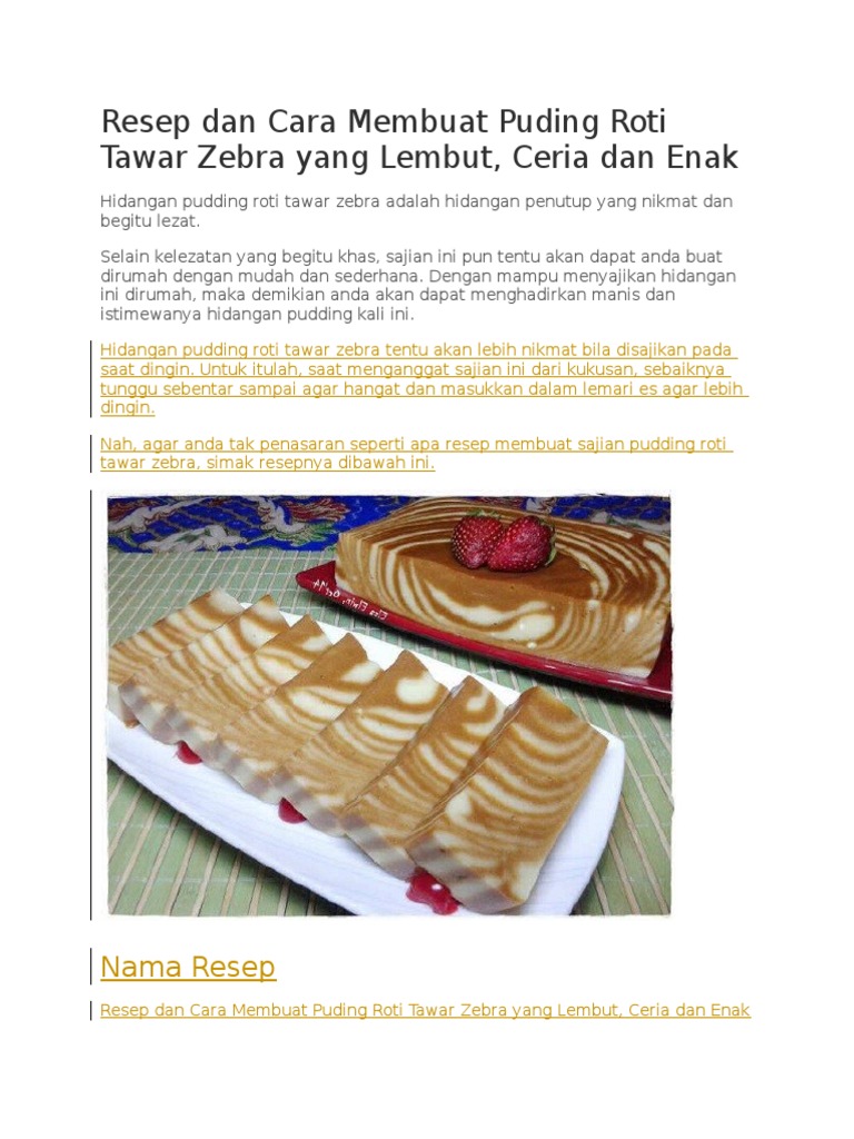 Resep2 Puding Roti Tawar Zebra Wattpad
